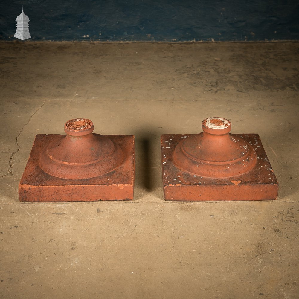 Fired Clay Pier Caps, Pair of Urn or Finial Bases