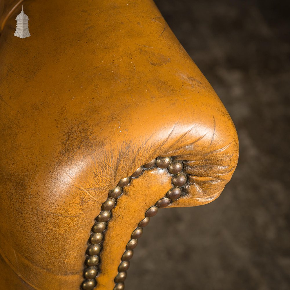 Edwardian Brown Button Back Leather Swivel Chair with Later Castors