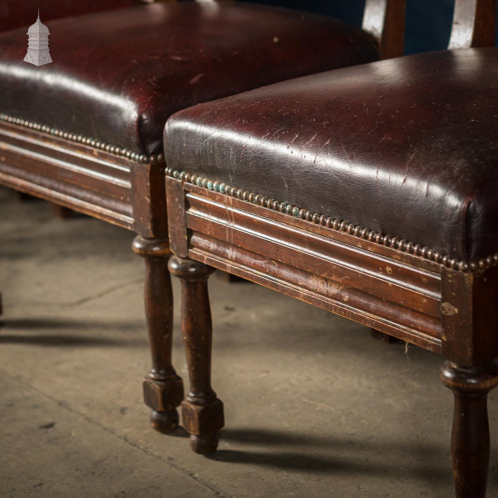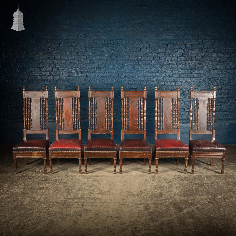 Set of 6 19th C French Tall Back Dining Chairs with Worn Leather Seat Pads