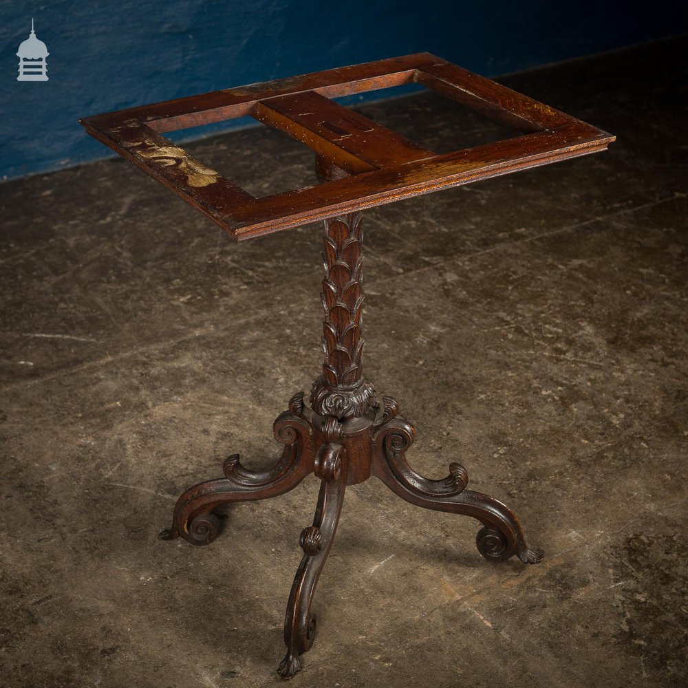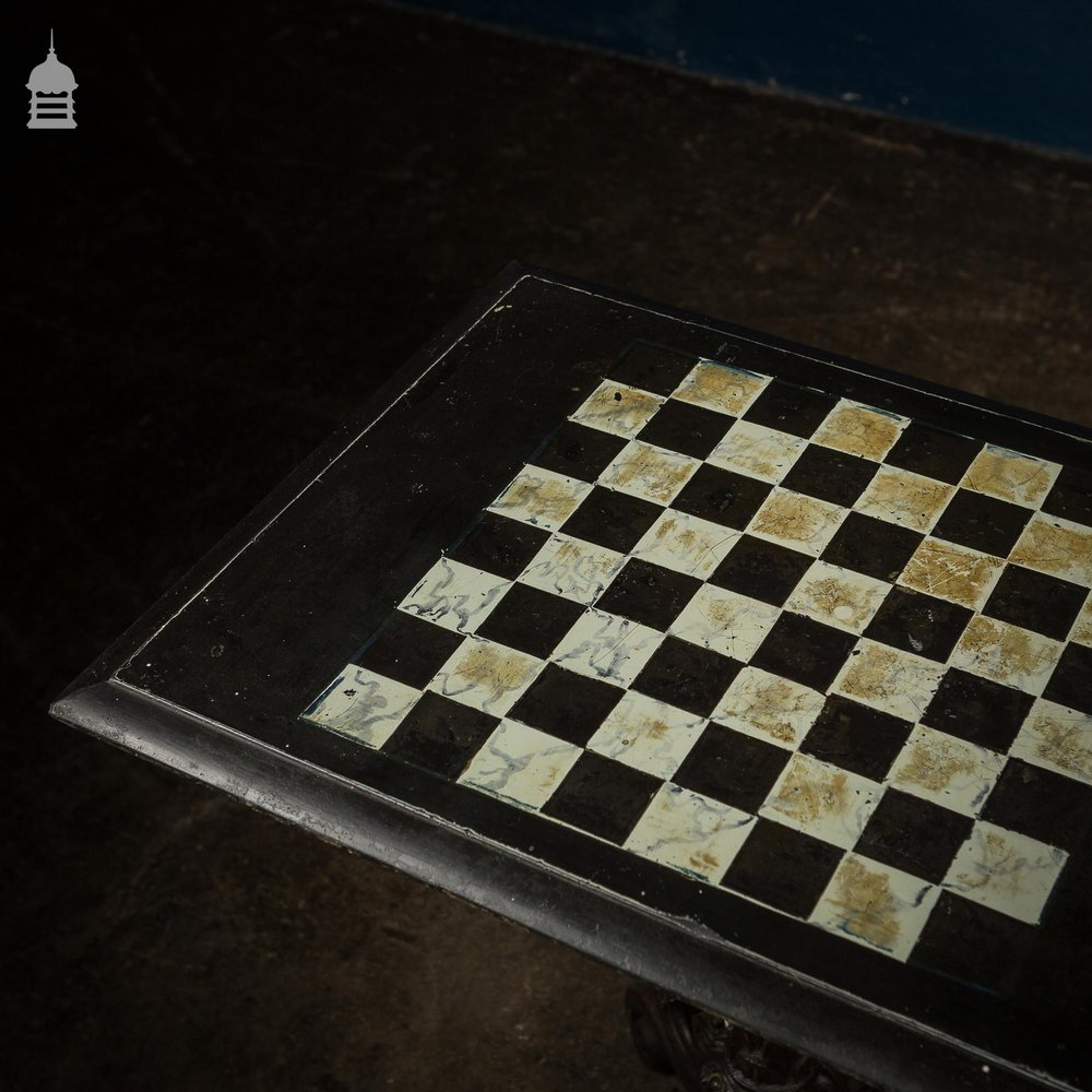 Ornate 18th C Tripod Base with Later Slate Hand Painted Chess Table Top