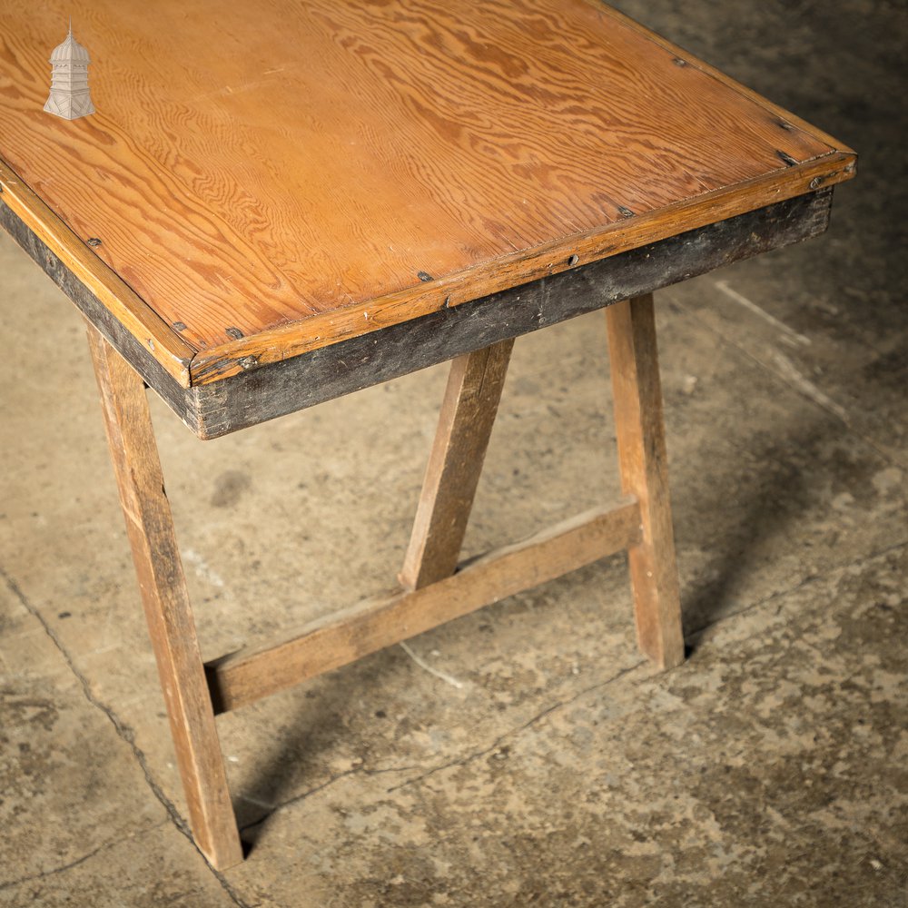 Pitch Pine Folding Military Low Trestle Table - Marked GR VI Sterling Furniture