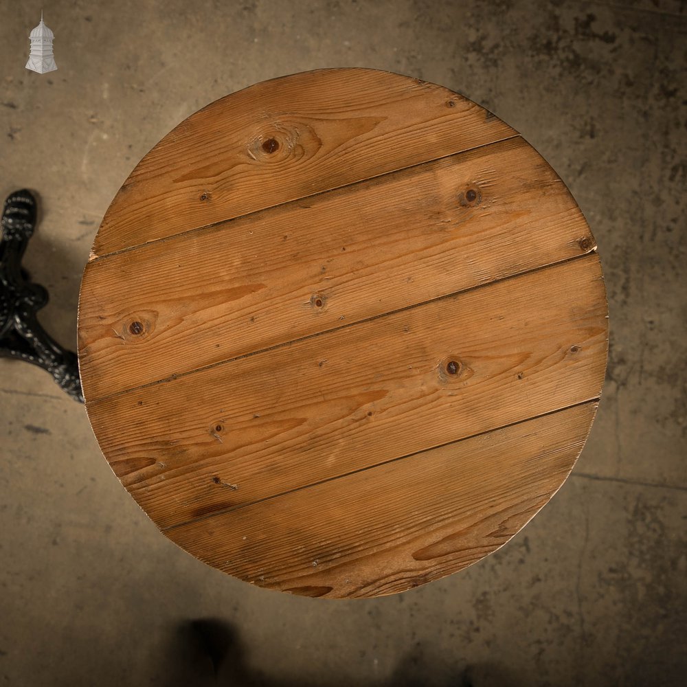 Round Bistro Tables, Reclaimed Pine Tops on Cast Alloy Bases, Pair