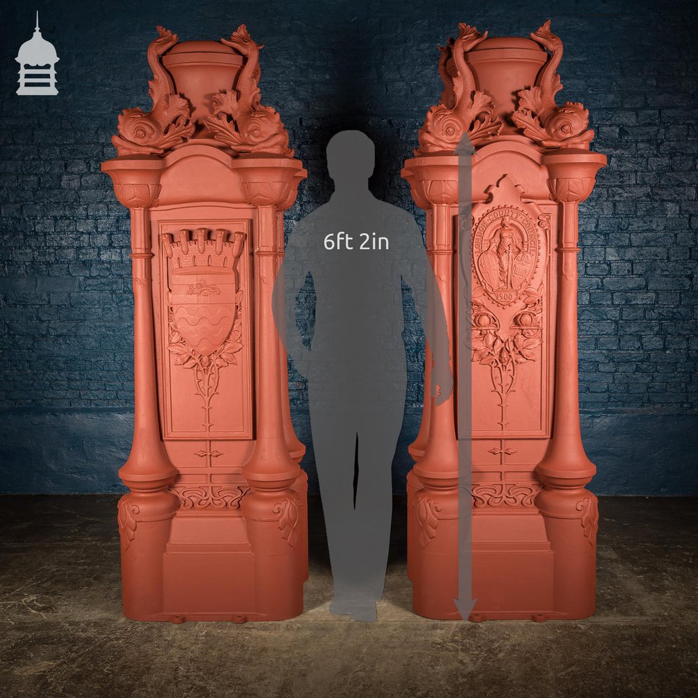 Pair of Cast Iron London County Council Embankment Lamppost Bases finished in Red Oxide Primer