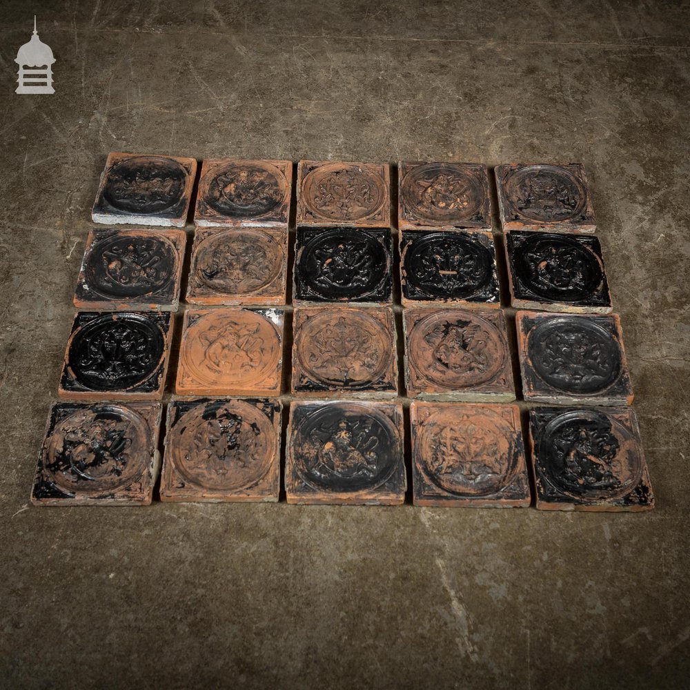 Set of 22 19th C Decorative 7 inch Terracotta Tiles with Flakey Paint