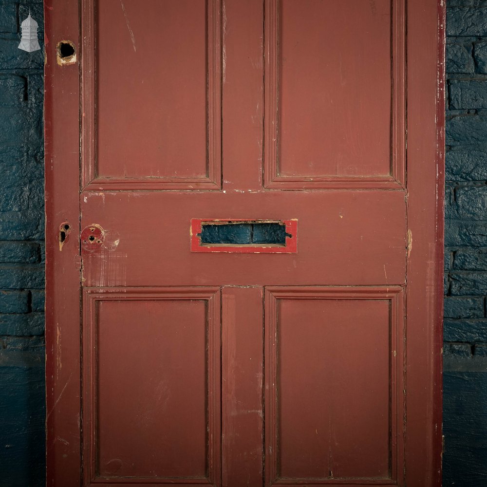 Pine Panelled Door, Moulded 4 Panel Front Door, Red Painted Finish