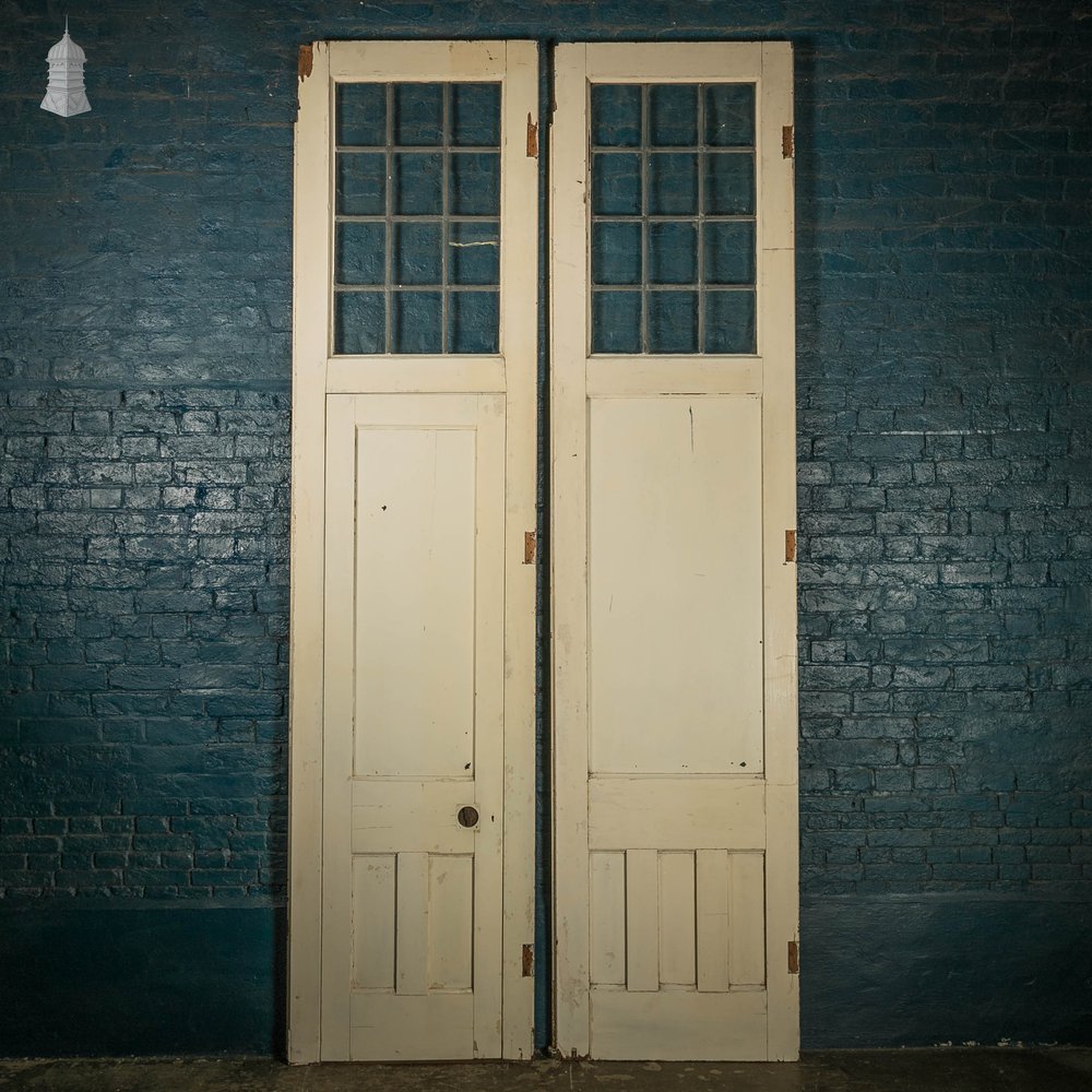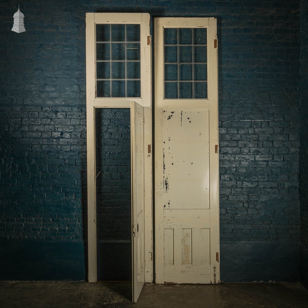 Glazed Room Divider, Leaded Glass with Internal Door and White Painted Finish