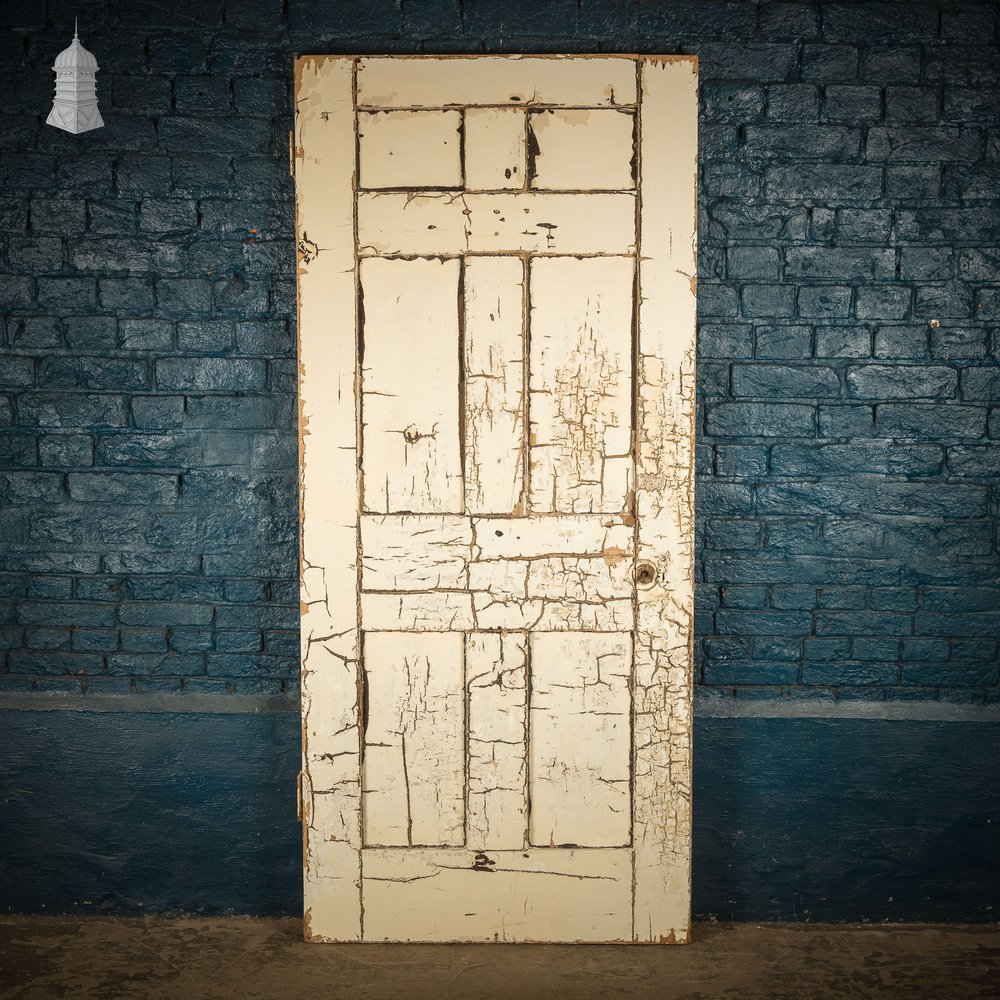 A reclaimed simple 6 panel door with a classic layout. Hinges and lock present, handles not included. Holes remain from removed hardware. Painted white on one side and brown on the reverse. Knocks, scuffs and wear in keeping with the age of the product. Check listing images for condition.