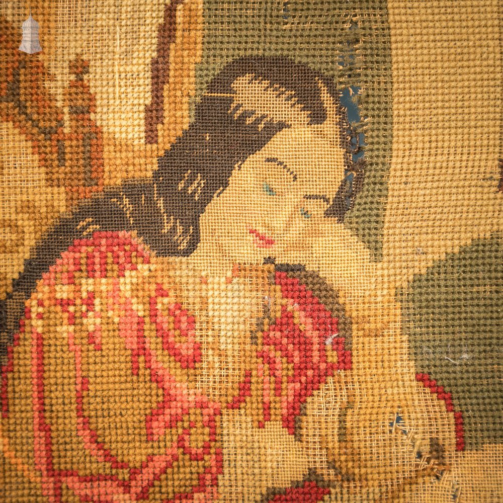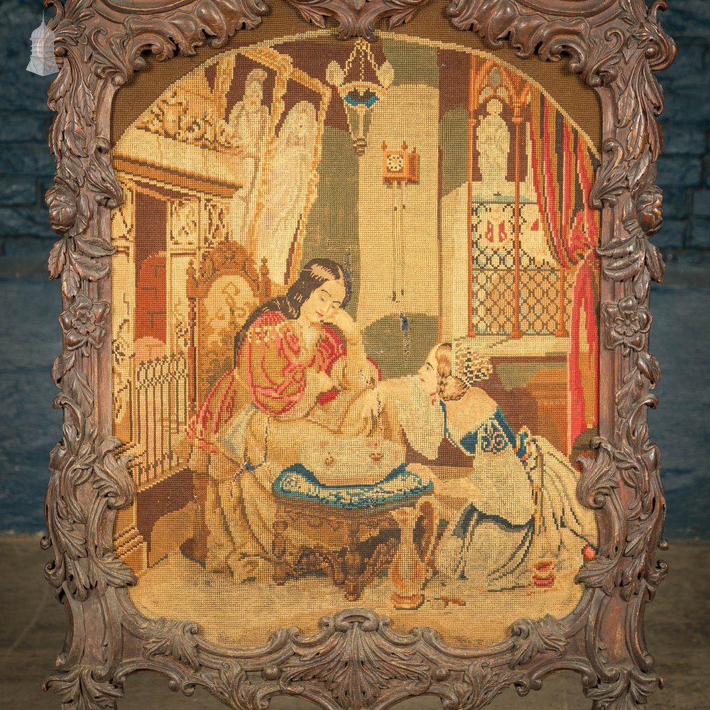 Carved French Fire Screen, Crewel Work Tapestry, 18th C Carved Oak Frame
