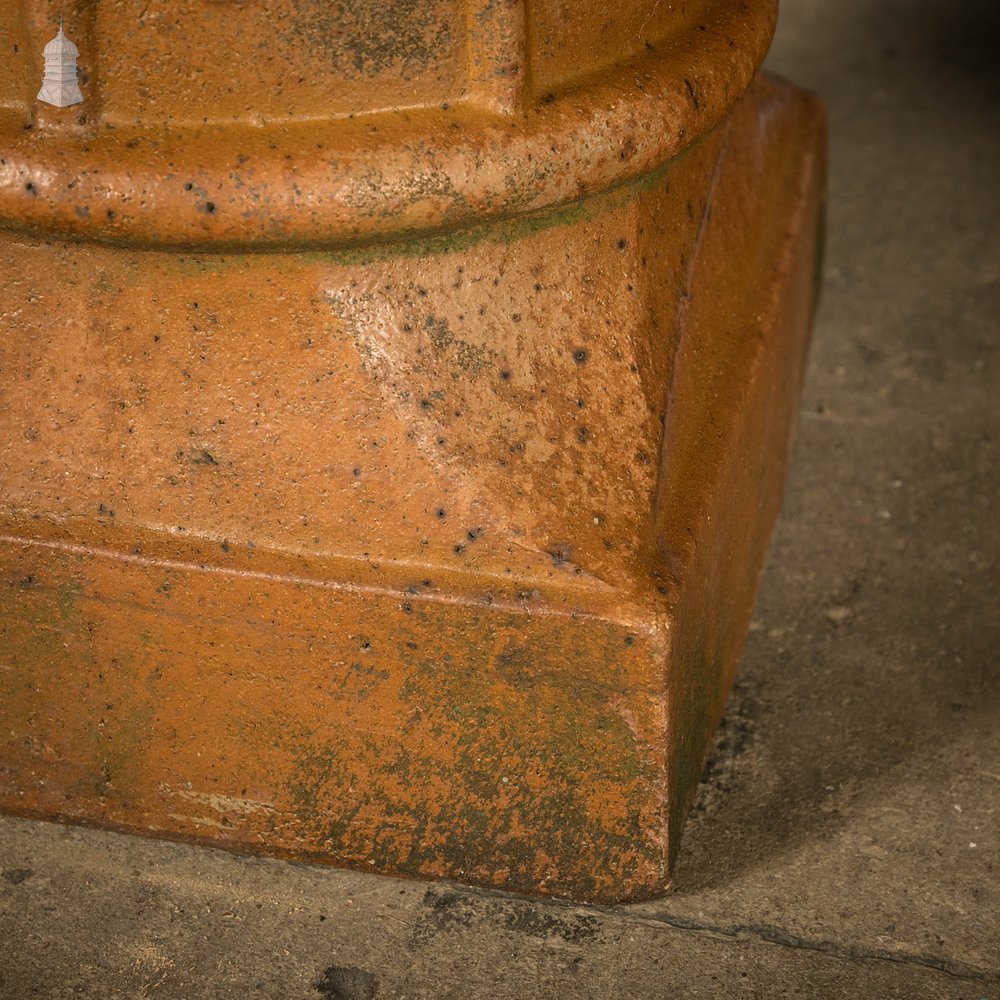 A matching pair of salt-glazed chimney pots, cylindrical with a square base stamped 'Dewhurst Preston'. Perfect to be used as planters. Wear including knocks and scuffs is consistent with age. Please use the listing photos as a visual reference of the condition.