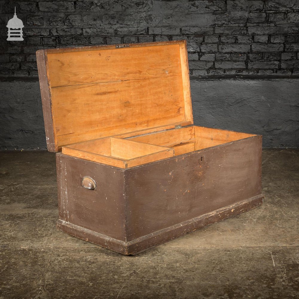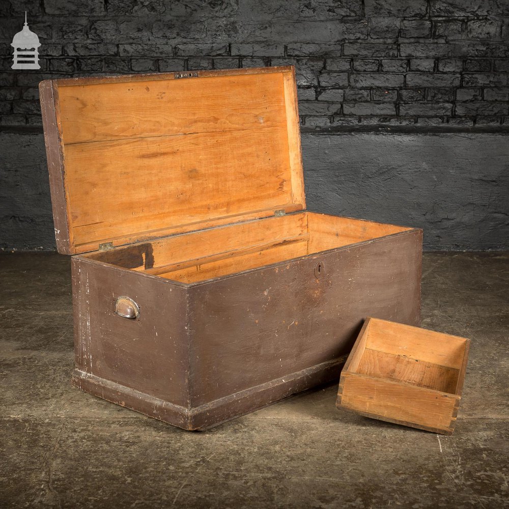 Vintage Wooden Tool Chest with Brown Flaky Paint and Removable Internal Tray