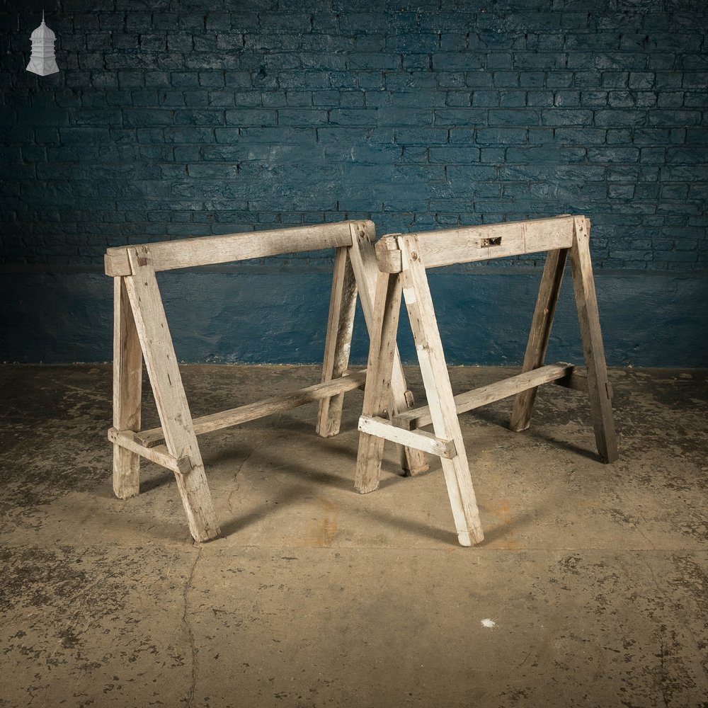Vintage Wooden Trestles, Pair of Rustic Workshop Trestles