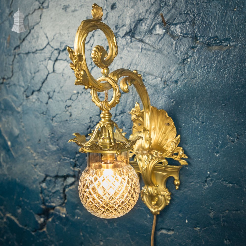 Rococo-style Wall Sconce Lamp, Cut Glass Shade