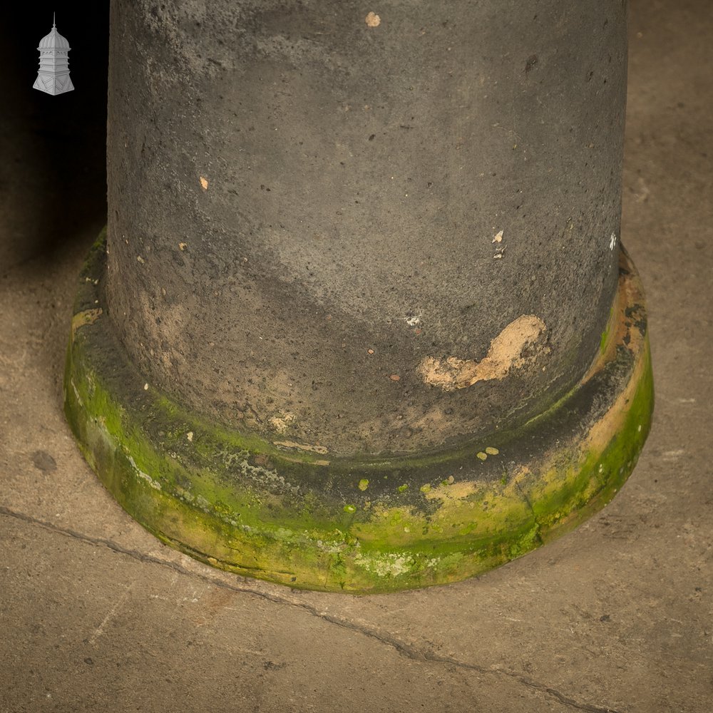 This pair of cannon head chimney pots has a simple, semi-decorative round design. With a weathered surface and natural patina, they are well-suited for use in a garden setting. Ideal for repurposing as planters, they offer a practical and functional way to display plants while adding a touch of architectural interest. Sturdy and versatile, they can serve as decorative elements or functional garden features.