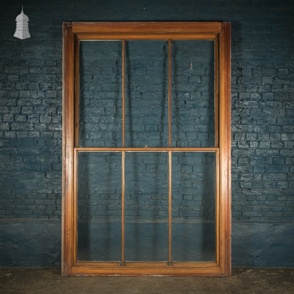 Salvaged from Shire Hall in Bury St Edmunds this large-scale sliding sash window on weighted chains is over 8ft high and constructed from mahogany. The window in the listing images is the item for sale. The advertised price reflects the condition of the item. Where damage to glass is evident and wear / distress is more than expected for reclaimed item, we have priced accordingly. The hardware may not be complete. Please use the images on the listing as a reference to the condition.