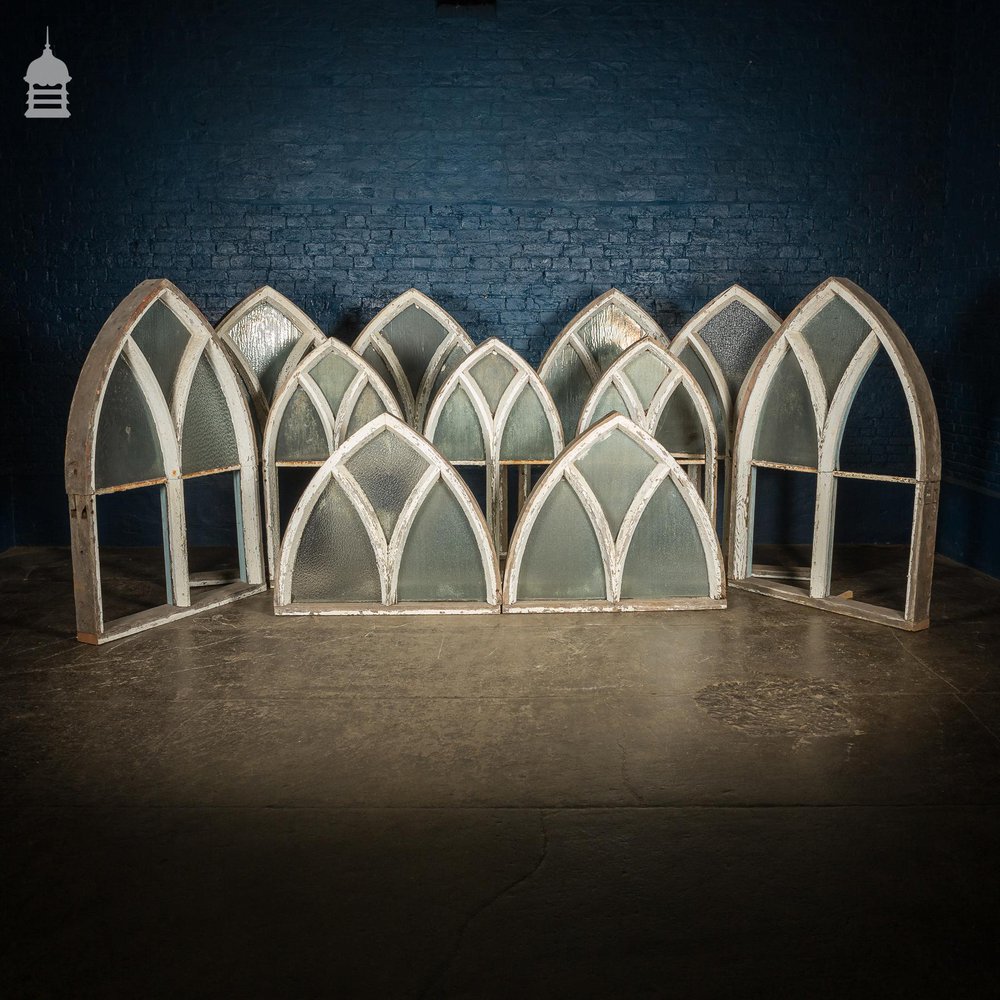 Set of 11 19th C Pine Astral Glazed Arch Top Windows