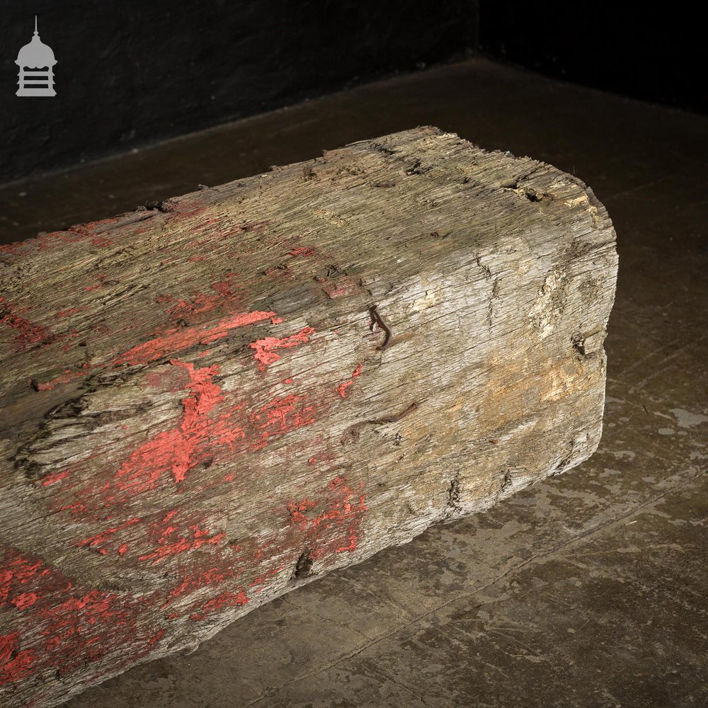 Large Oversize 18” x 18” x 8ft Rustic Iroko Beam with Flakey Red Paint