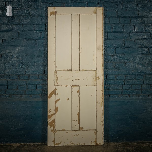Small Georgian 4 Panel Pine Cottage Door with White Distressed Paint Finish
